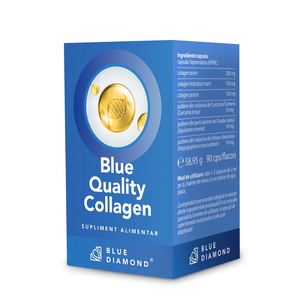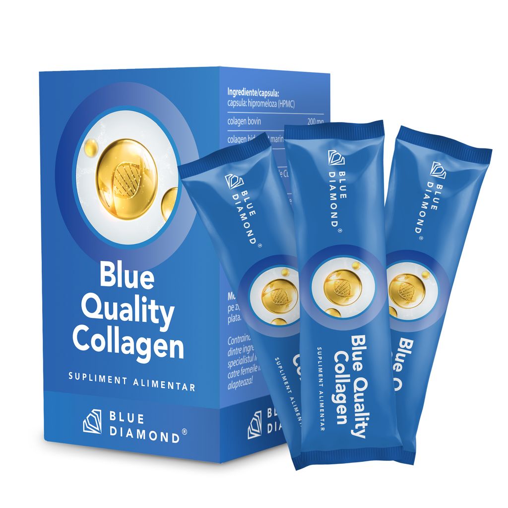 Odată cu înaintarea în vârstă, colagenul, o proteină produsă în mod natural de organism, care se regăsește în articulații, oase, piele, păr, unghii, mușchi, începe să dispară. Un factor important, atunci când folosim suplimentele alimentare, este ca tipurile de colagen să fie din surse diferite. Specialiștii noștri în nutriție și suplimente alimentare vă recomandă Blue Quality Collagen, care conține 3 tipuri de colagen: marin (pește), porcin și bovin.