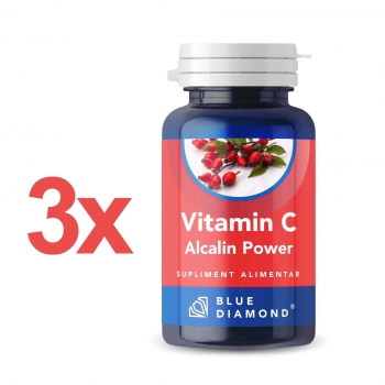 Pachetul contine 3 bucati  Vitamina C alcalin Power Pachetul are o reducere de 11% platesti 194.05 lei in loc de 214,83 lei Contine 350 mg de vitamina C din ascorbat de calciu si 200 mg de vitamina C naturala din maces (Rosa Canina) si 100 mg vitamina C naturala din Acerola