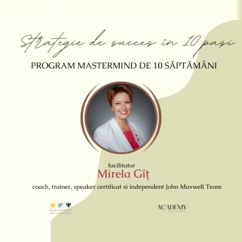 Program MasterMind de 10 săptămâni, cu o sesiune de 90 de minute/săptămână, având la bază materialul din cartea „Dezvoltă liderul din tine 2.0” scrisă de John C. Maxwell, care să te ajute să faci pașii corecți în dezvoltarea ta ca lider, dar și a oamenilor din echipa ta.